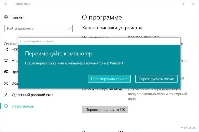 Для применения изменений потребуется перезагрузка компьютера, выполнить её можно немедленно, прямо из того же диалогового окна «Переименуйте компьютер», или в любое другое удобное время.