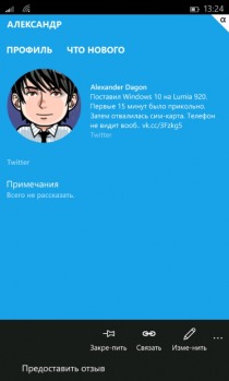 - предустановлены новые приложения Outlook Почта и Календарь, Телефон, Сообщения, Люди (Контакты), Карты, созданные на новой универсальной платформе, наделённые современным и более привычным пользователям других платформ интерфейсом, поддержкой сервисов Exchange, Outlook.com, Gmail, Facebook и других;
