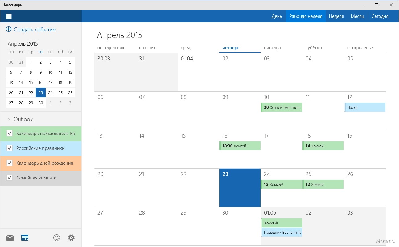 В этой сборке официально представлены новые приложения Почта и Календарь Outlook, ранее предложенные пользователям Technical Preview для телефонов. Приложения тесно связаны между собой, построены на новой универсальной платформе, поддерживают работу с сервисами Office 365, Exchange, Outlook.com, Gmail, IMAP, POP и другими.