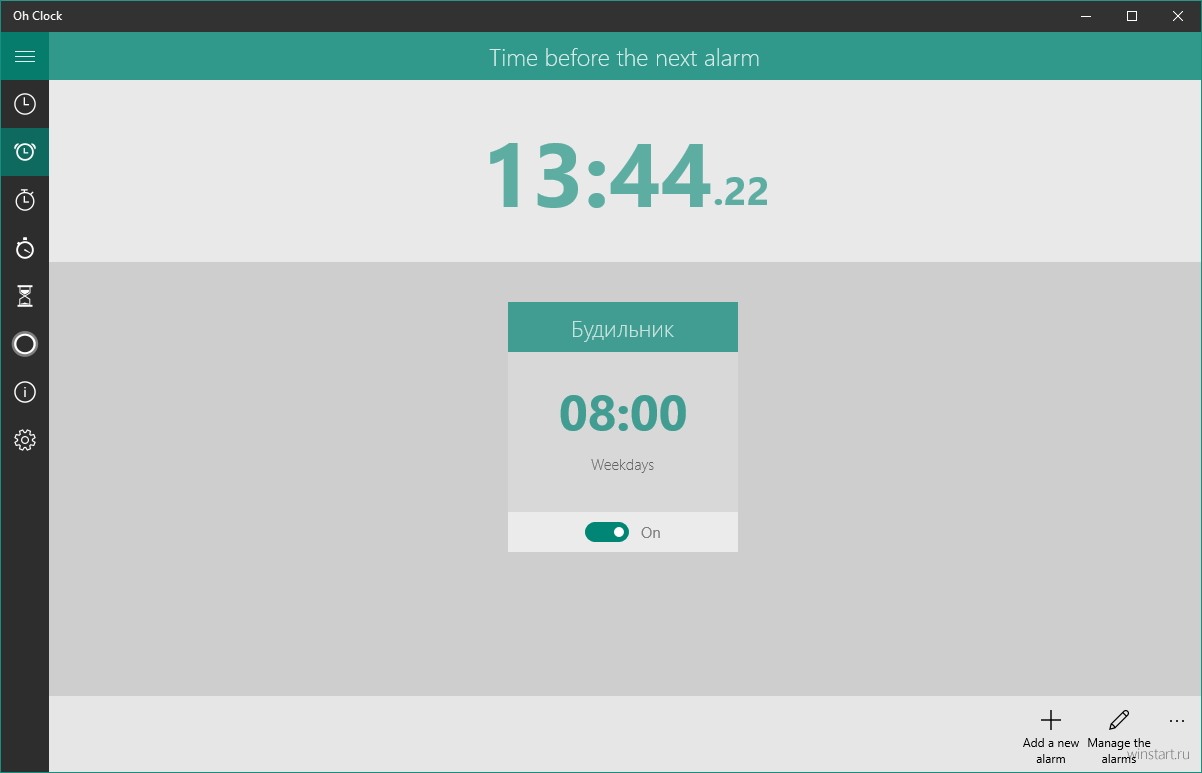 К минусам приложения можно отнести отсутствие живой плитки для меню «Пуск», отсутствие синхронизации с мобильной версией, скудный набор опций и настроек. Если вам эти мелочи не критичны, Oh Clock может стать неплохой альтернативой системному приложению «Будильники и часы».