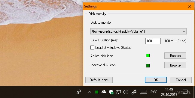 Disk Activity Indicator — это крошечная утилита для мониторинга активности выбранного пользователям диска или его раздела. В настройках программы можно задать подходящую частоту моргания индикатора, выбрать для него собственные иконки и активировать автозагрузку при старте системы.